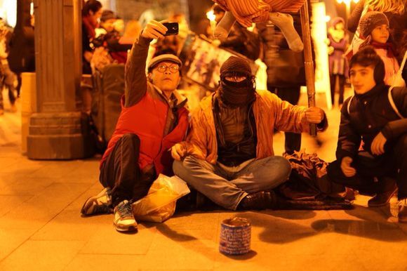 사진 속 신구는 스페인의 한 거리에서 행위예술 아티스트로 보이는 사람과 셀카 찍기에 한창이다. 차가운 바닥에 털썩 앉은 채 사진 찍기에 집중하고 있는 신구의 모습이 눈길을 끈다.