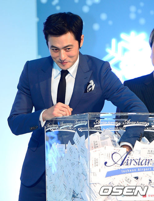 10일 오후 인천공항에서 인천공항 면세점 에어스타 애비뉴 명예홍보대사 장동건과 함께 '최고의 행운 고객'을 뽑는 경품 추첨 행사가 열렸다.