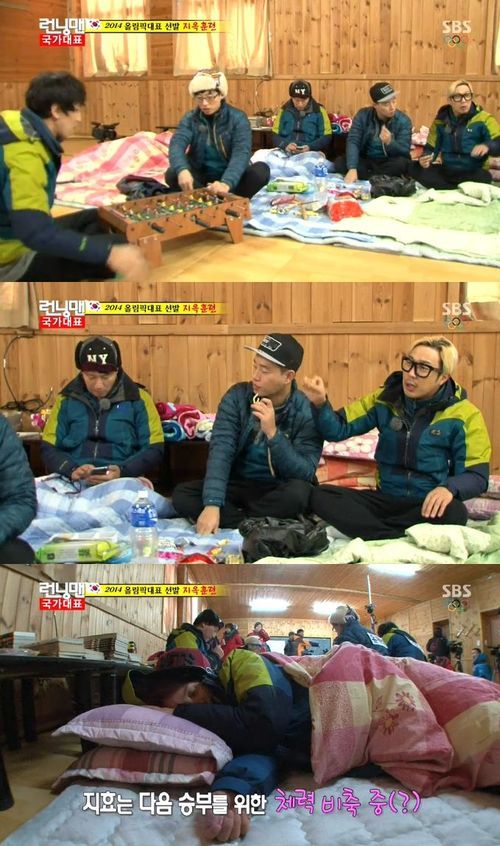 그에 따라 올스타팀은 벌칙으로 런닝맨팀과 함께 먹을 음식을 만들어야 하는 벌칙을 받게 됐다. 런닝맨팀이 음식을 만드는 사이 올스타팀은 따뜻한 방에서 휴식 시간을 갖게됐고, 팀의 홍일점인 송지효는 막간을 이용해 낮잠에 빠졌다.