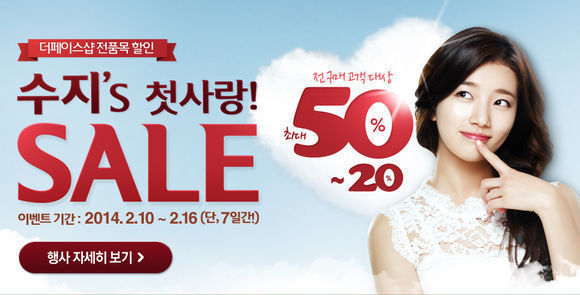 더페이스샵이 '수지의 첫사랑 세일'을 실시한다.