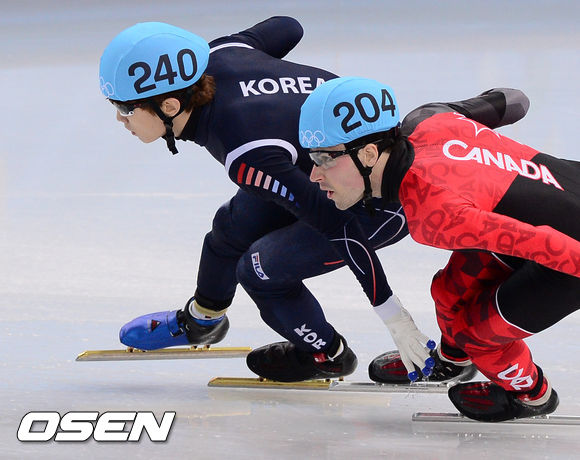 10일(한국시간) 러시아 소치 아이스버그 펠리스에서 열린 2014 소치올리픽 쇼트트랙 1500mm 남자 예선, 대한민국 이한빈이 선두로 나서고 있다.