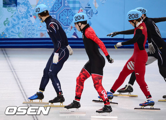 10일(한국시간) 러시아 소치 아이스버그 펠리스에서 열린 2014 소치올리픽 쇼트트랙 1500mm 남자 예선, 대한민국 이한빈이 선두로 통과하고 있다.