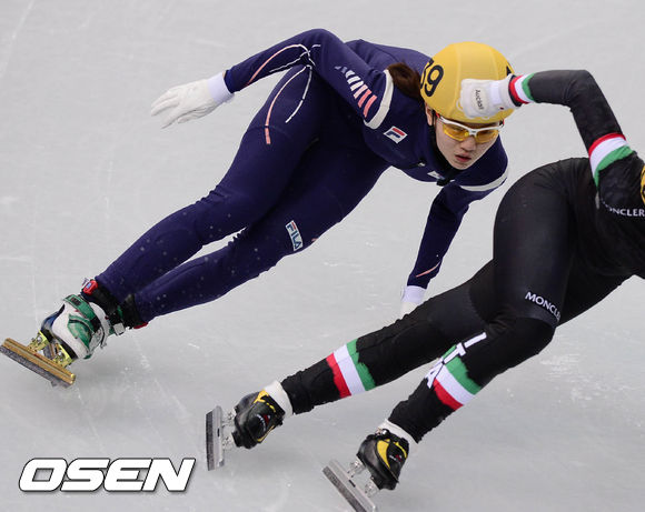 10일(한국시간) 러시아 소치 아이스버그 펠리스에서 열린 2014 소치올리픽 쇼트트랙 여자 500m 예선, 대한민국 심석희가 경기에 임하고 있다. 심석희는 조 2위로 준준결승에 진출했다.