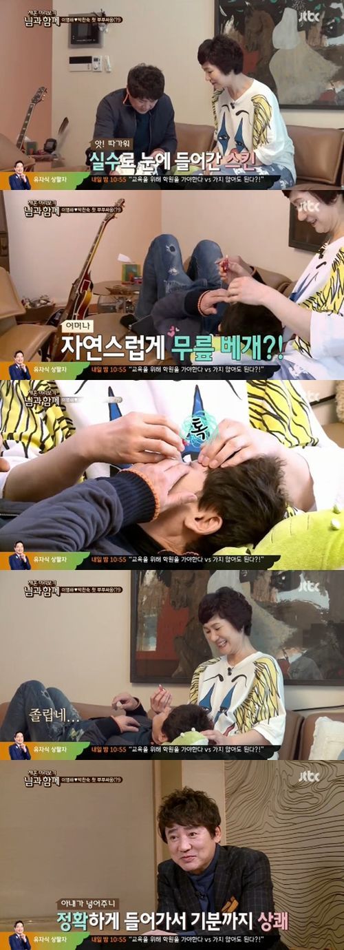이날 실수로 눈에 스킨이 들어가 안약을 사러 약국에 다녀온 이영하. 그는 자연스럽게 박찬숙의 무릎에 누워 안약을 넣어달라고 부탁했다.