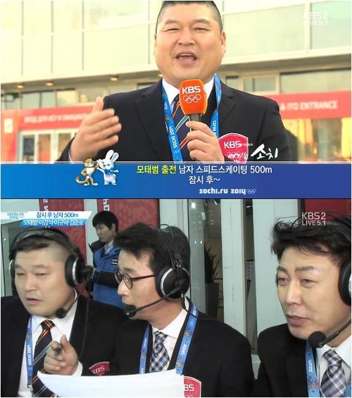 강호동은 10일 오후 KBS 2TV를 통해 중계 방송된 2014 소치 동계올림픽 남자 스피드스케이팅 500m 경기에서 이규혁 선수가 2차전에서 35초 48로 들어오자 박수를 치며 맞이했다.