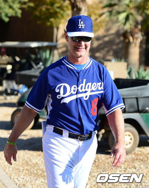 다저스 돈 매팅리 감독이 훈련장으로 향하고 있다.
