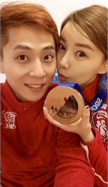 러시아 쇼트트랙 대표팀 선수 안현수(빅토르 안)가 동메달을 여자친구 우나리 씨에게 걸어주고 인증샷을 찍었다.