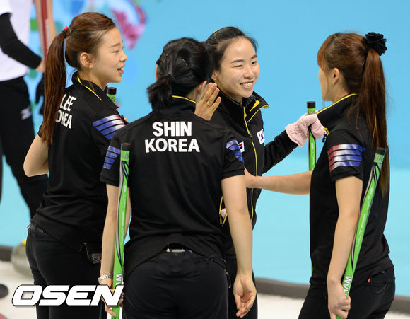 신미성(36)과 김지선(28) 이슬비(26) 김은지(25) 엄민지(23, 이상 경기도청)으로 구성된 여자 컬링 대표팀(세계랭킹 10위)은 11일(이하 한국시간) 러시아 소치의 아이스큐브 컬링센터에서 열린 컬링 라운드 로빈 세션 2 일본(세계랭킹 9위)와 경기서 12-7승리를 거두며 올림픽 첫 승의 기쁨을 누렸다.