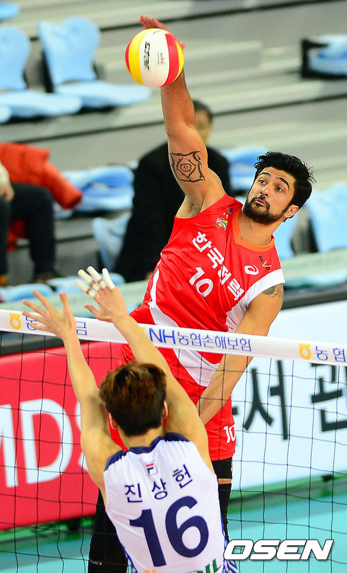 1세트 한국전력 비소토가 공격을 시도하고 있다.