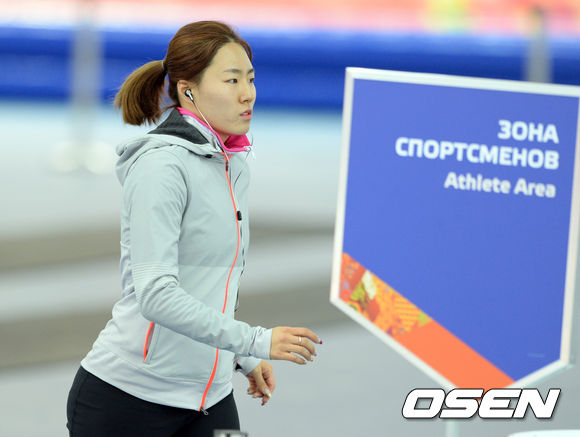11일(한국시간) 러시아 소치 아들레르 아레나 경기장에서 스피드스케이팅 여자 500m 1차전이 열리기 전 이상화가 몸을 풀고 있다.