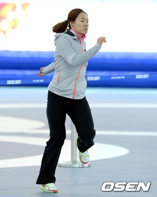 11일(한국시간) 러시아 소치 아들레르 아레나 경기장에서 스피드스케이팅 여자 500m 1차전이 열리기 전 이상화가 몸을 풀고 있다.