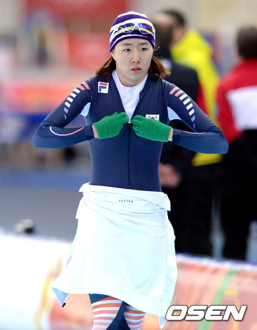 11일(한국시간) 러시아 소치 아들레르 아레나 경기장에서 스피드스케이팅 여자 500m 1차전이 열리기 전 이상화가 몸을 풀고 있다.