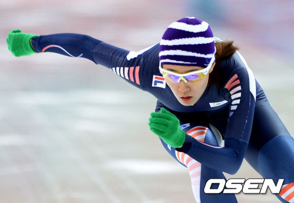11일(한국시간) 러시아 소치 아들레르 아레나 경기장에서 스피드스케이팅 여자 500m 1차전이 열리기 전 이상화가 트랙에서 연습을 하고 있다.