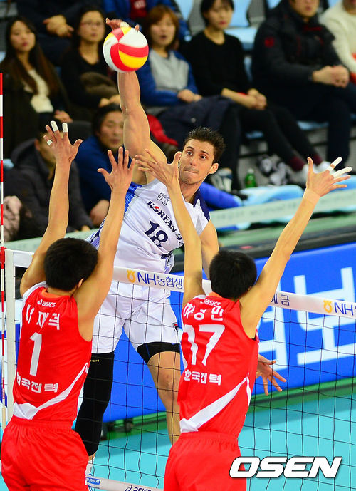 대한항공은 11일 오후 인천계양체육관에서 열린 NH농협 2013~2014 V-리그 남자부 4라운드 한국전력과의 맞대결서 3-1(20-25, 25-21, 25-13, 25-23) 승리를 거뒀다. 이날 대한항공은 상대의 스피드에 맞서 강서브로 상대를 뒤흔들며 값진 승점 3점을 획득했다.