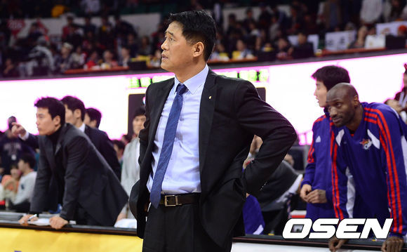 11일 오후 서울 잠실학생체육관에서 열린 '2013-2014 KB국민카드 프로농구' 서울 SK와 고양 오리온스의 경기 2차 연장전이 동점으로 끝나자 고양 추일승 감독이 심각한 표정으로 전광판을 바라보고 있다.