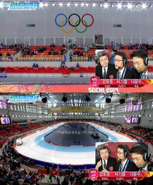 방송인 강호동이 KBS 소치 동계올림픽 방송에서 이상화 선수의 경기 중계에 나섰다.