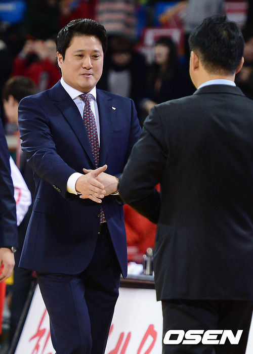 11일 오후 서울 잠실학생체육관에서 열린 '2013-2014 KB국민카드 프로농구' 서울 SK와 고양 오리온스의 경기 종료 후 문경은 감독과 추일승 감독이 악수를 하고 있다.