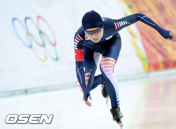 11일(한국시간) 러시아 소치 아들레르 아레나 경기장에서 열린 2014 소치동계올림픽 스피드스케이팅 여자 500m 1차전에서 박승주가 경기에 임하고 있다.