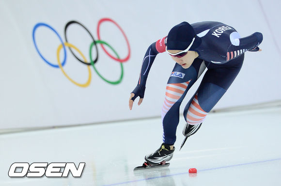 11일(한국시간) 러시아 소치 아들레르 아레나 경기장에서 열린 2014 소치동계올림픽 스피드스케이팅 여자 500m 1차전에서 김현영이 경기에 임하고 있다.