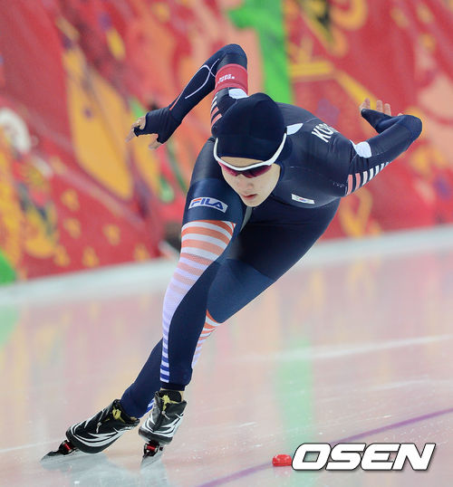 11일(한국시간) 러시아 소치 아들레르 아레나 경기장에서 열린 2014 소치동계올림픽 스피드스케이팅 여자 500m 1차전에서 김현영이 경기에 임하고 있다.