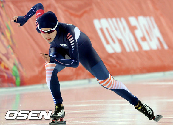 11일(한국시간) 러시아 소치 아들레르 아레나 경기장에서 열린 2014 소치동계올림픽 스피드스케이팅 여자 500m 1차전에서 김현영이 경기에 임하고 있다.