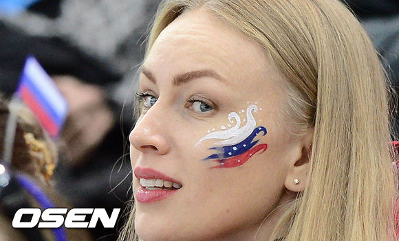 11일(한국시간) 러시아 소치 아들레르 아레나 경기장에서 열린 2014 소치동계올림픽 스피드스케이팅 여자 500m 1차전 한 러시아 여성이 응원을 하고 있다.