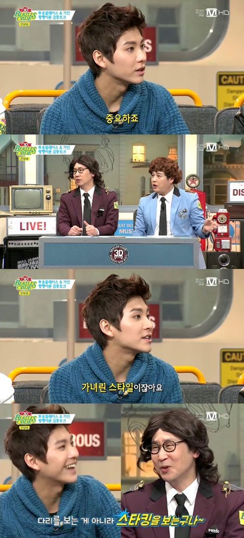 이에 ‘비틀즈코드’ MC들이 가인을 추천하자, 송승현은 “가인 누나는 가녀린 스타일인데 저는 매끈하고 스타킹이 잘 어울리는 다리가 좋다”라고 솔직하게 말했다.