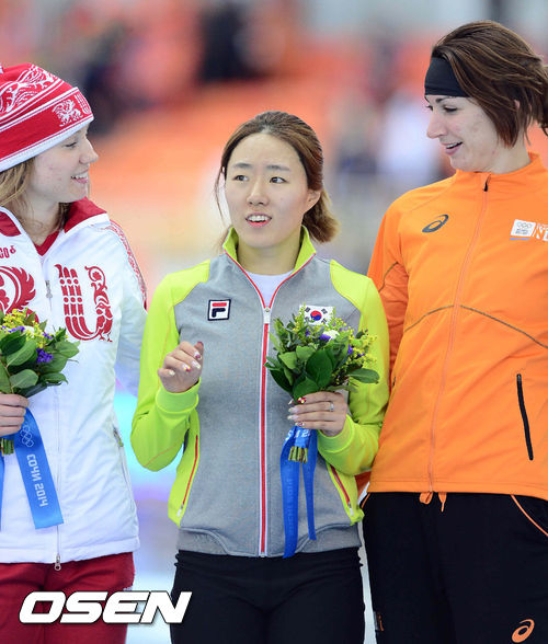 이상화는 11일(이하 한국시간) 러시아 소치 아들레르 아레나에서 열린 스피드스케이팅 여자 500m 1차 레이스서 37초42를 기록해 1위에 오른후 2차 레이스에서 37초28을 기록 합 74초70으로 금메달을 목에 걸었다. 특히 2차 레이스에서 37초 28을 기록, 기존의 올림픽 신기록(37초 30)까지 갈아치우며 금메달을 따냈다.