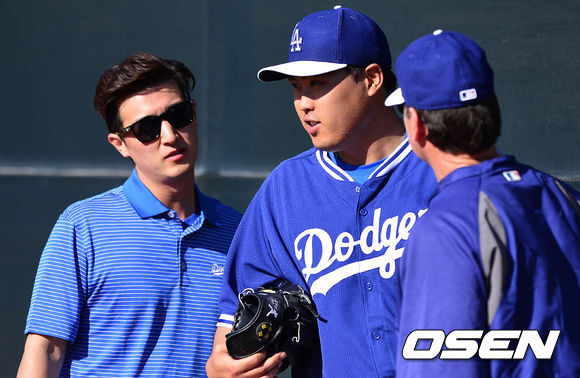 불펜피칭을 시작하기 전 류현진은 릭 허니컷 투수코치와 이야기를 나눈 뒤 약 30개의 공을 던졌다. 류현진은 "구종별로 골고루 던졌다. 몸 상태는 괜찮다"고 이날 자신의 투구에 만족하는 모습이었다./sunday@osen.co.kr