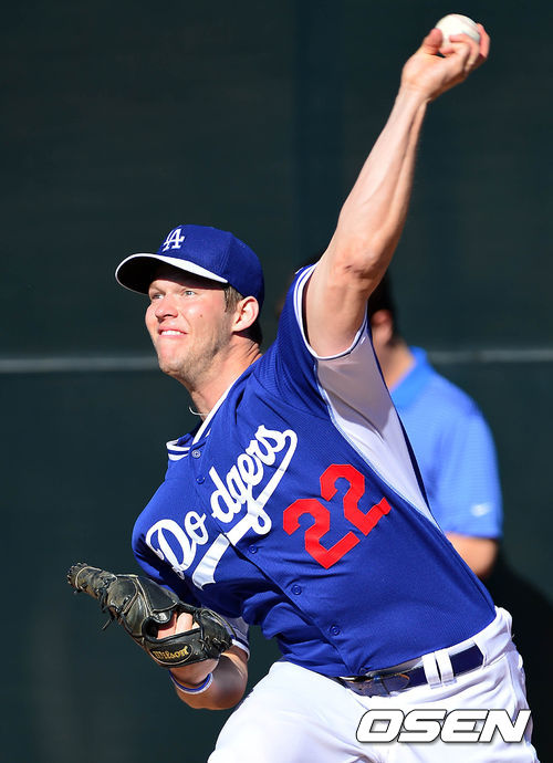 다저스 클레이튼 커쇼가 불펜 투구를 하고 있다.