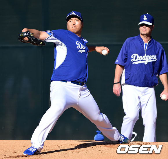불펜피칭을 시작하기 전 류현진은 릭 허니컷 투수코치와 이야기를 나눈 뒤 약 30개의 공을 던졌다. 류현진은 "구종별로 골고루 던졌다. 몸 상태는 괜찮다"고 이날 자신의 투구에 만족하는 모습이었다./sunday@osen.co.kr