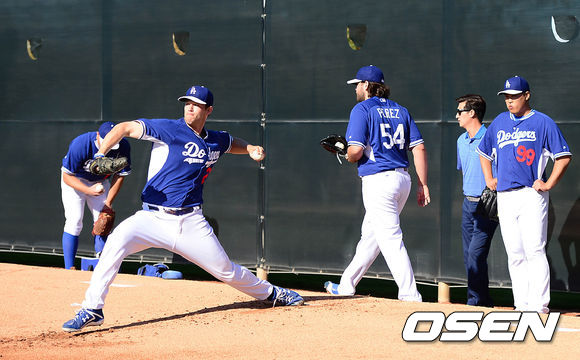 불펜피칭을 시작하기 전 류현진은 릭 허니컷 투수코치와 이야기를 나눈 뒤 약 30개의 공을 던졌다. 류현진은 "구종별로 골고루 던졌다. 몸 상태는 괜찮다"고 이날 자신의 투구에 만족하는 모습이었다./sunday@osen.co.kr