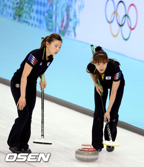 신미성(36)과 김지선(28) 이슬비(26) 김은지(25) 엄민지(23, 이상 경기도청)으로 구성된 여자 컬링 대표팀(세계랭킹 10위)은 11일(이하 한국시간) 러시아 소치의 아이스큐브 컬링센터에서 컬링 라운드 로빈 세션 3 스위스(세계랭킹 4위)와 경기에서 6-8로 패했다. 이날 패배로 1승 1패를 기록한 한국은 영국, 일본과 함께 공동 4위에 올랐다.