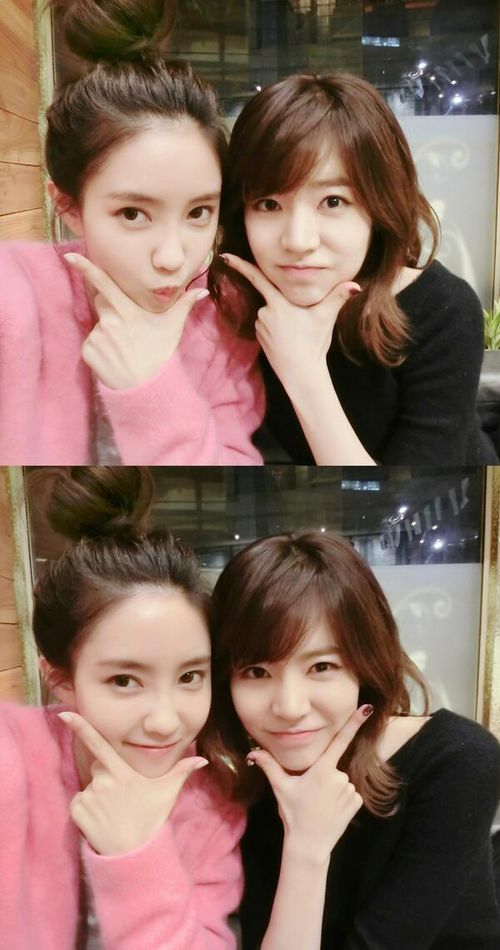 사진에서 핑크빛 니트의 효미와 블랙 니트의 써니는 청순미가 넘치는 인증샷 사진을 공개했다.
