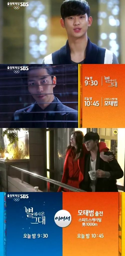 12일과 13일 방송되는 ‘별에서 온 그대’는 모태범 선수가 출연하는 스피드스케이팅 남자 1000m 경기 중계로 인해 30분 먼저 방송될 예정이다.