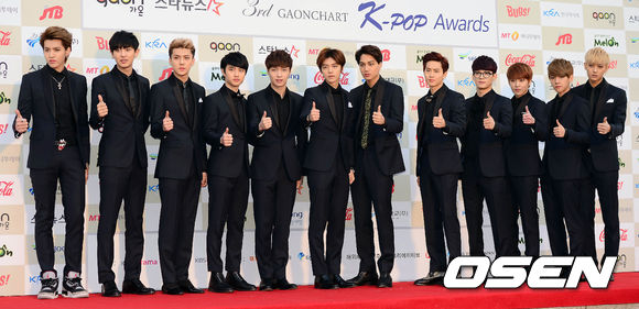 12일 오후 서울 방이동 올림픽공원 체조경기장에서 열린 '제3회 가온차트 K-POP 어워드' 레드카펫 행사에서 엑소가 포토타임을 갖고 있다.