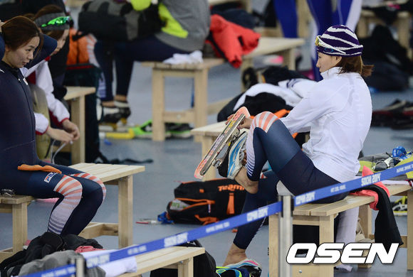 12일(한국시간) 러시아 소치 아들레르 아레나에서 열린 스피드스케이팅 대표팀 훈련에서 이상화가 훈련을 준비하고 있다.