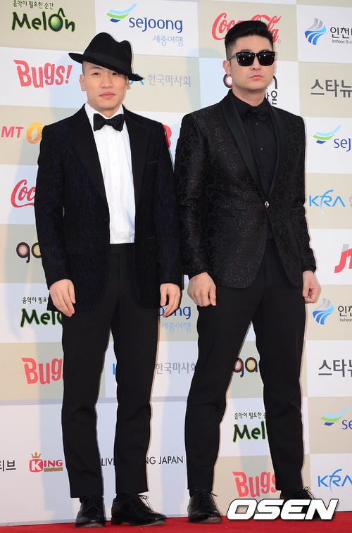 12일 오후 서울 방이동 올림픽공원 체조경기장에서 열린 '제3회 가온차트 K-POP 어워드' 레드카펫 행사에서 다이나믹 듀오가 포토타임을 갖고 있다.