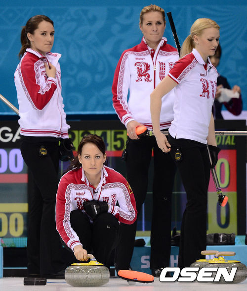신미성(36)과 김지선(28) 이슬비(26) 김은지(25) 엄민지(23, 이상 경기도청)으로 구성된 여자 컬링 대표팀(세계랭킹 10위)이 12일(한국시간) 러시아 소치의 아이스큐브 컬링센터에서 스웨덴과 3차전을 가졌다.