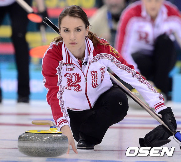 신미성(36)과 김지선(28) 이슬비(26) 김은지(25) 엄민지(23, 이상 경기도청)으로 구성된 여자 컬링 대표팀(세계랭킹 10위)이 12일(한국시간) 러시아 소치의 아이스큐브 컬링센터에서 스웨덴과 3차전을 가졌다.
