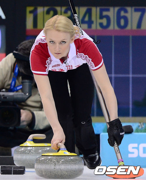 신미성(36)과 김지선(28) 이슬비(26) 김은지(25) 엄민지(23, 이상 경기도청)으로 구성된 여자 컬링 대표팀(세계랭킹 10위)이 12일(한국시간) 러시아 소치의 아이스큐브 컬링센터에서 스웨덴과 3차전을 가졌다.
