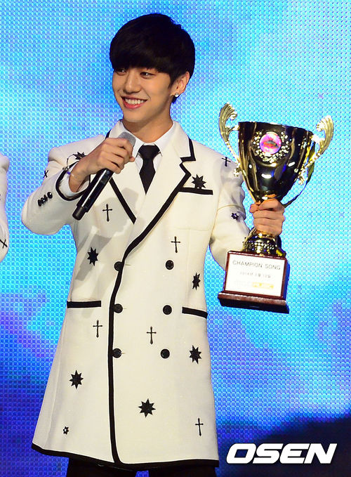 챔피언송을 받은 BAP가 기뻐하고 있다.