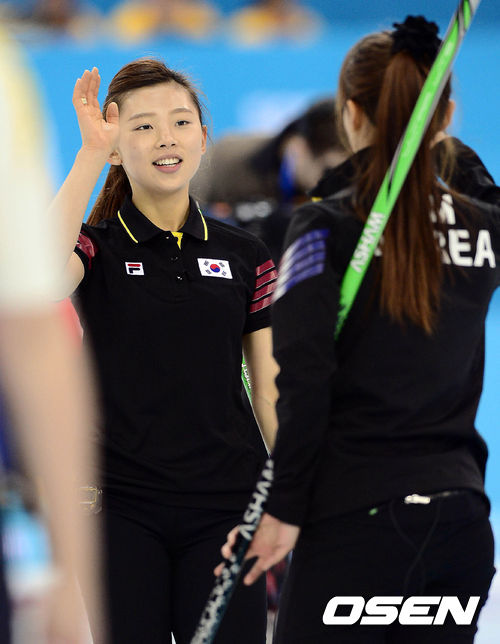 신미성(36)과 김지선(28) 이슬비(26) 김은지(25) 엄민지(23, 이상 경기도청)으로 구성된 여자 컬링 대표팀(세계랭킹 10위)이 12일(한국시간) 러시아 소치의 아이스큐브 컬링센터에서 스웨덴과 3차전을 가졌다.