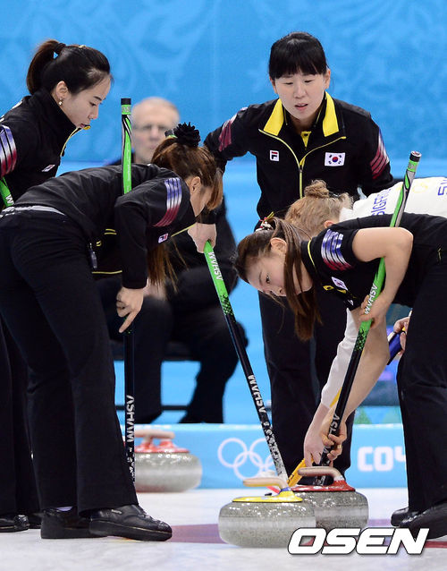 신미성(36)과 김지선(28) 이슬비(26) 김은지(25) 엄민지(23, 이상 경기도청)으로 구성된 여자 컬링 대표팀(세계랭킹 10위)이 12일(한국시간) 러시아 소치의 아이스큐브 컬링센터에서 스웨덴과 3차전을 가졌다.