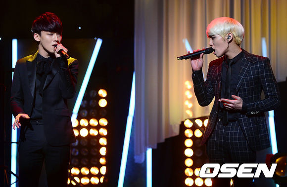 엑소 첸과 샤이니 종현이 멋진 무대를 선보이고 있다.