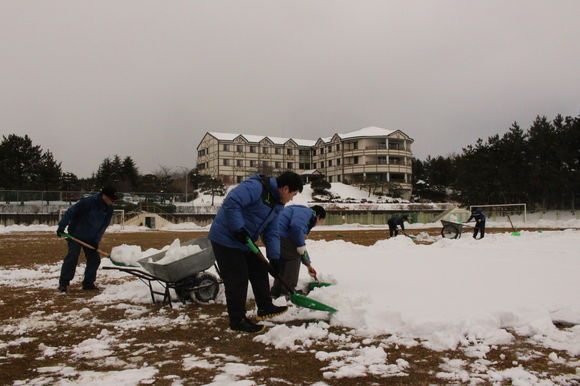 이에 포항 전 임직원들은 예정된 모든 일을 연기하고 제설작업에 투입됐다. 지난 11일부터 진행된 제설작업은 60% 정도 진행 되었으나 계속된 폭설로 인해 진행에 상당한 애로를 겪고 있는 상황.