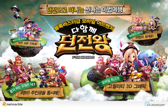 넷마블이 2014년 야심차게 준비한 모바일 RPG게임이 곧 공개된다. CJ E&M 넷마블은 초대형 모바일 RPG ‘다함께 던전왕’을 오는 14일 카카오 게임하기를 통해 선보인다고 밝혔다.