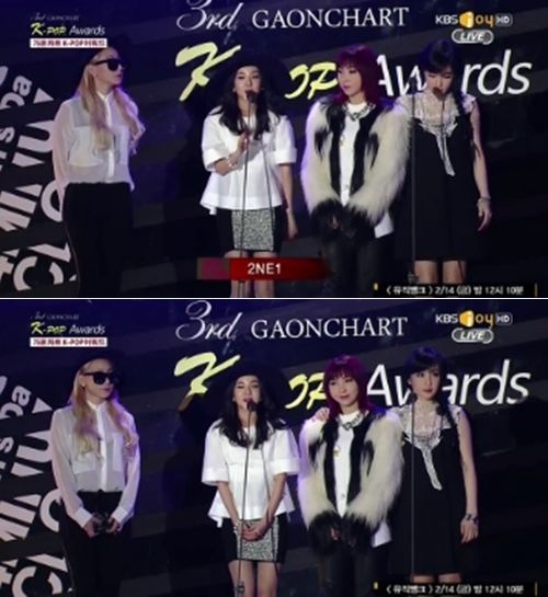 2NE1은 12일 서울 올림픽공원 체조경기장에서 열린 제3회 가온차트 K-POP 어워드에서 K-POP 월드 한류스타상의 수상자로 무대에 올랐다.
