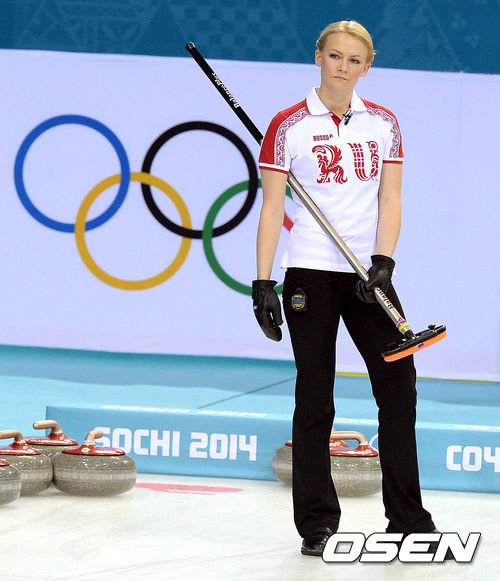 신미성(36)과 김지선(28) 이슬비(26) 김은지(25) 엄민지(23, 이상 경기도청)으로 구성된 여자 컬링대표팀(세계랭킹 10위)은 12일(한국시간) 러시아 소치의 아이스큐브 컬링센터에서 컬링 라운드 로빈 세션 4 스웨덴(세계랭킹 1위)전서 4-7로 패했다.