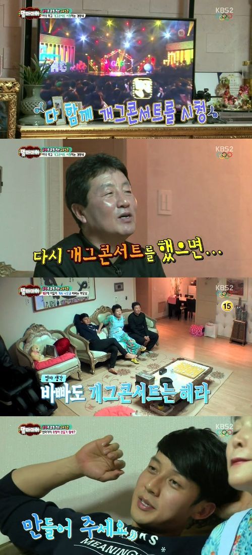 이날 다함께 ‘개콘’ 시청에 나선 허경환 가족들. 허경환의 부모님은 “통영사람들은 경환이와 찬민이 때문에 ‘개콘’을 많이 본다. 네가 ‘개콘’에 안 나오니 통영 사람들은 네가 아예 텔레비전에 안 나오는지 안다”라고 말했다.